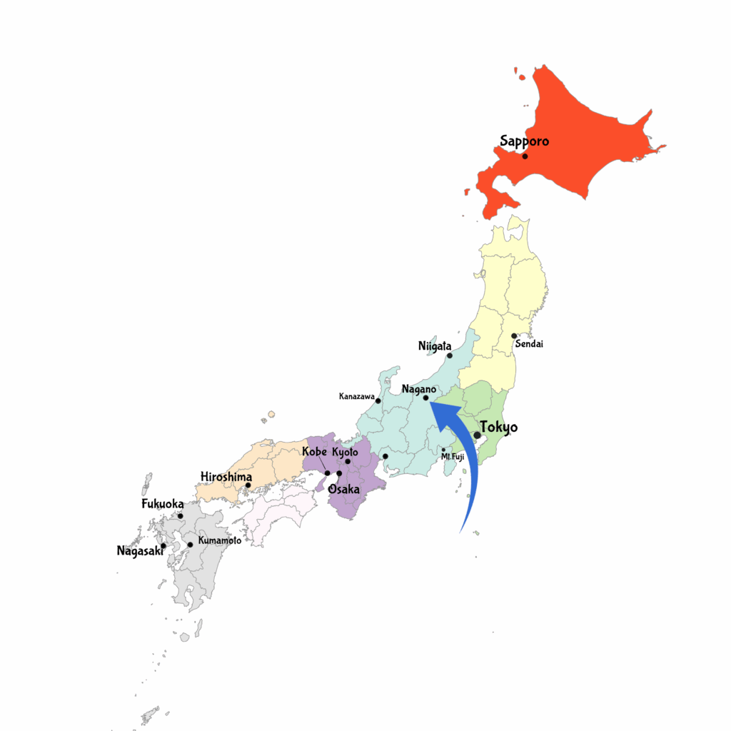 Nagano liegt zentral auf der Insel Honshu und die meisten Reisenden besuchen die Stadt nach Matsumoto oder Tokyo. Von Nagano reist du leicht in Richtung Norden, zum Beispiel nach Niigata, Sendai oder Aomori. Aber wenn du südlicher willst, dann gehst du über Kanazawa.