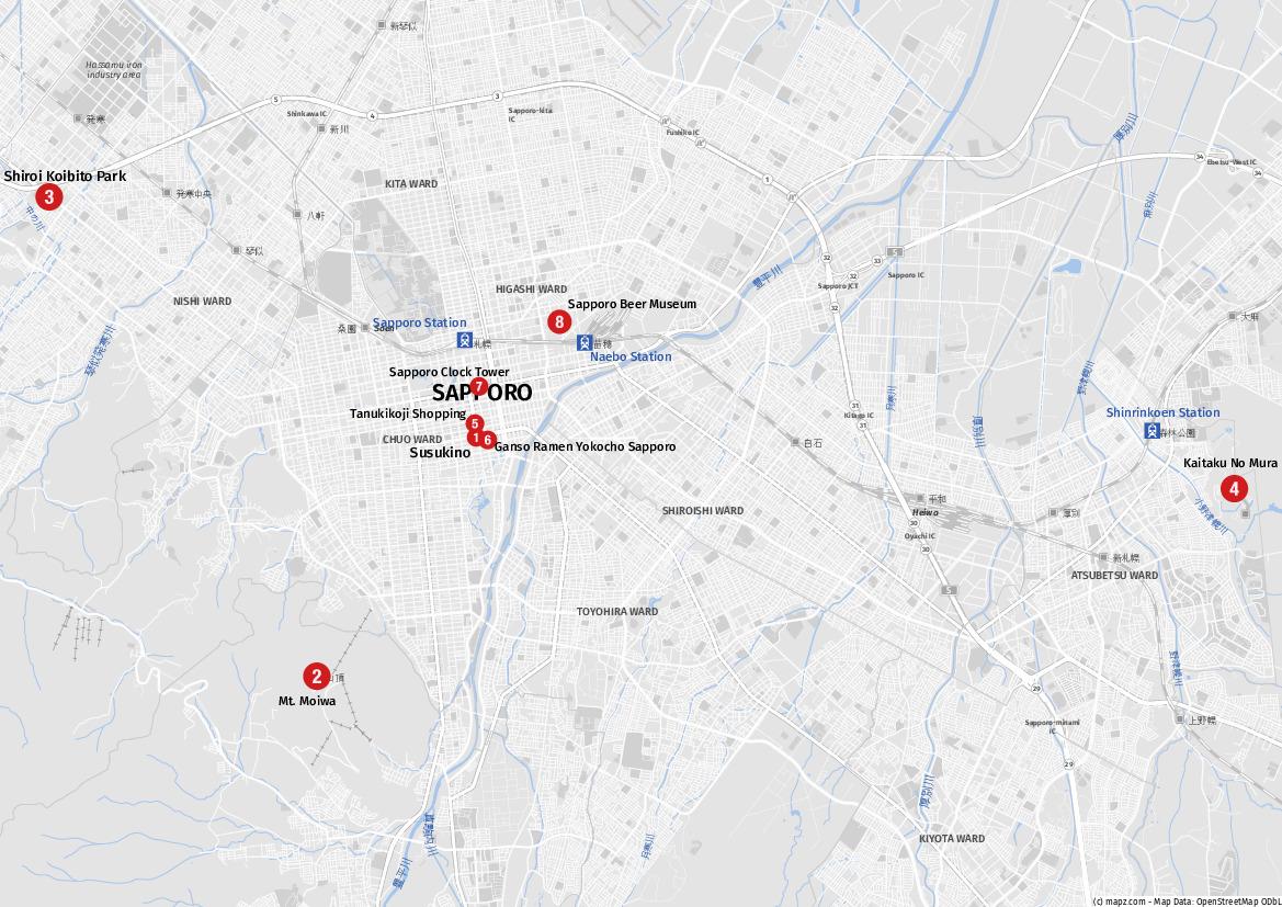 - Für einen atemberaubenden Blick auf Sapporo ist eine Fahrt zur Spitze des Moiwa-Bergs ein Muss. Erreichbar per Seilbahn, bietet die Spitze einen spektakulären Blick auf die Stadt, besonders nachts. Es wird oft als eines der besten Nachtpanoramen in Japan eingestuft.