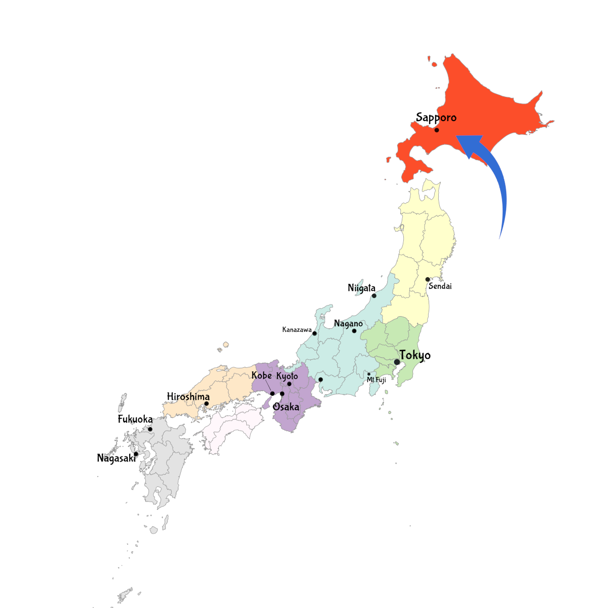 Die Insel Hokkaido ist in Japan bekannt für ihre Wildheit, hohe Berge und unberührte endlose Wälder. Außerdem kannst du dort natürlich prima Wintersport betreiben, denn fast die gesamte Insel ist im Winter mit Schnee bedeckt. In Sapporo fallen etwa sechs Meter Schnee pro Jahr, nicht wenig! Die Stadt ist sehr weitläufig im Vergleich zu anderen japanischen Städten. Im Vergleich leben nur zwei Millionen Menschen in einem Gebiet, das doppelt so groß ist wie Tokyo, wo 38 Millionen leben.